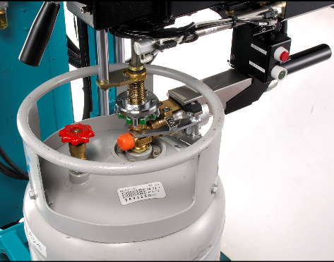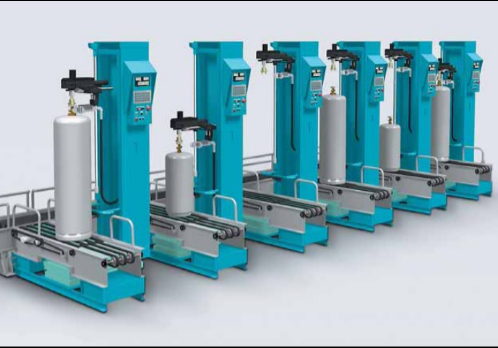 容器に充填ノズルをセットするだけでバルブの自動開閉、残ガス計量、自動充填と容器搬出までを自動で行います。
